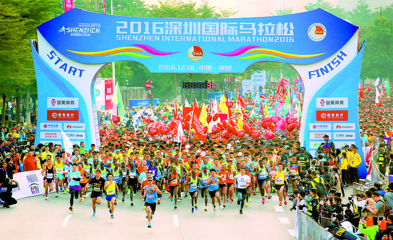 2016年深圳國(guó)際馬拉松比賽現(xiàn)場(chǎng)。