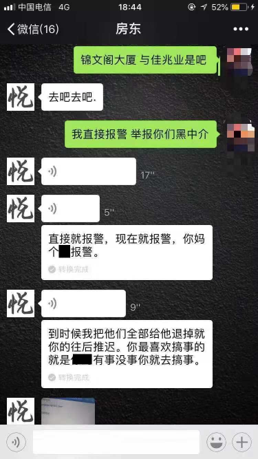 追索押金的過程并不平靜。10月13號(hào)的一次微信溝通中,余某亮對(duì)李小姐以文字和色情圖片進(jìn)行人身恐嚇、辱罵和性騷擾。記者還獲悉,余某亮至少對(duì)2人女租客進(jìn)行過性騷擾,也有男租客稱受到余某亮等人的人身恐嚇。