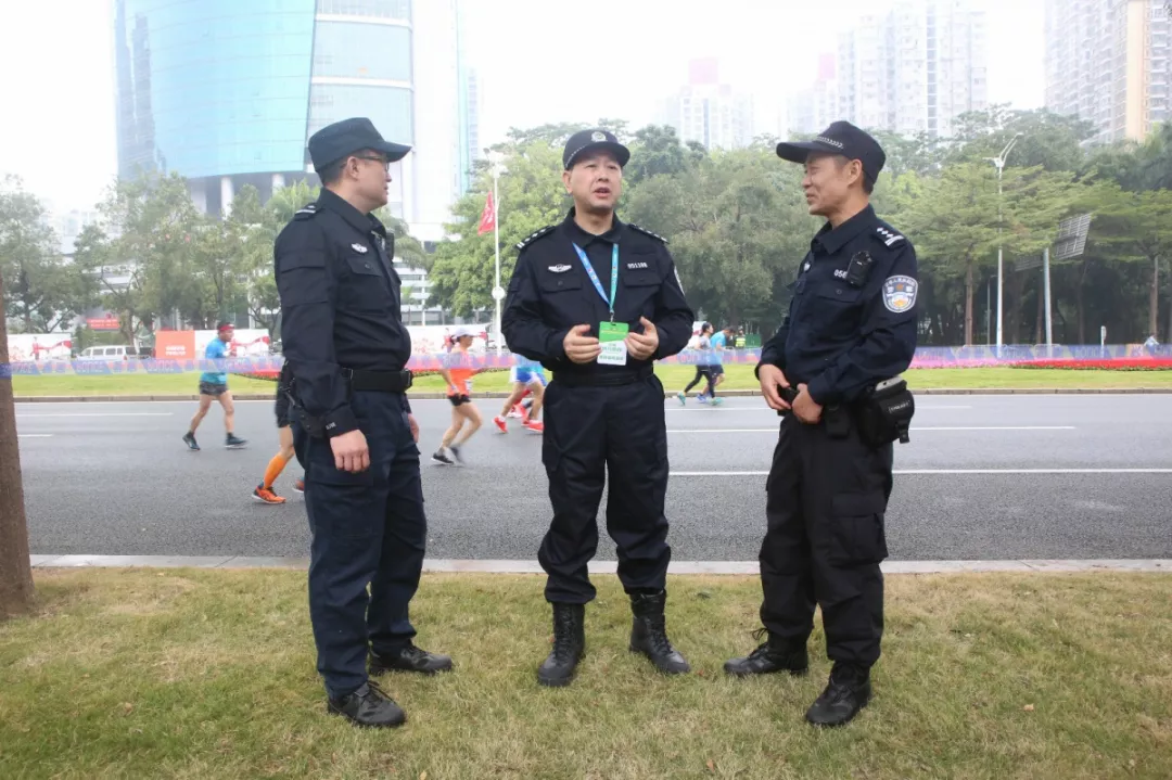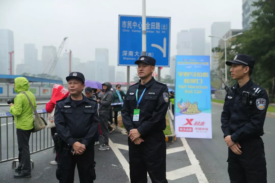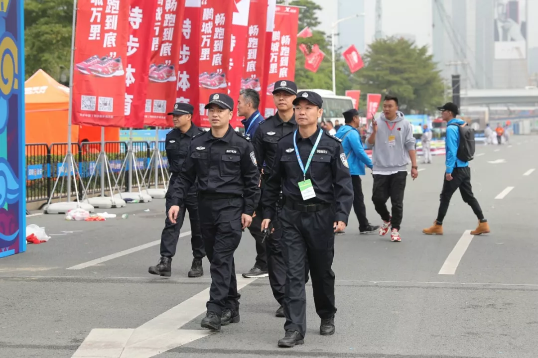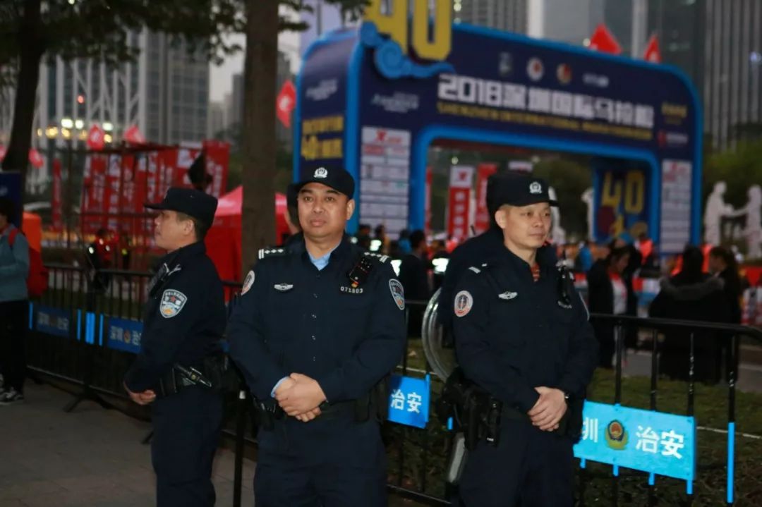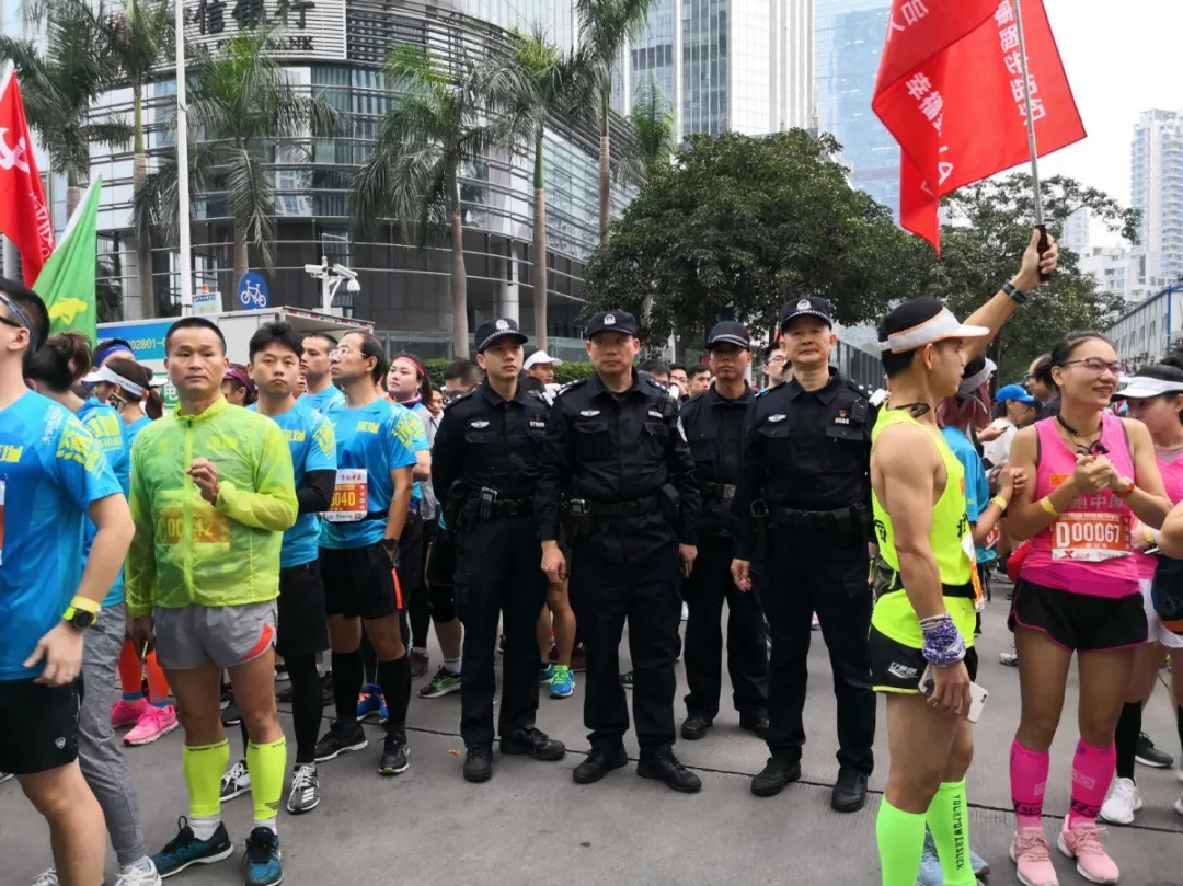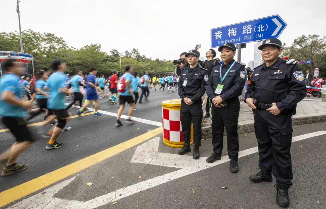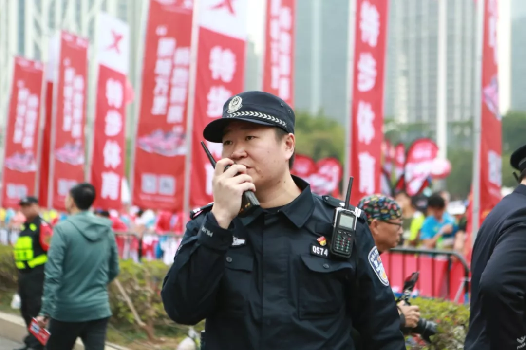 為全力做好此次馬拉松安保工作,福田警方提前謀劃、科學(xué)部署,承擔(dān)全程、半程馬拉松起點及6.2公里賽道的安全保衛(wèi),共出動警力1972人,啟用20套4G現(xiàn)場圖傳 “千里眼”,20套視頻識別探頭“守點”;警力實時定位系統(tǒng)、118個高低空視頻預(yù)案“守線”;71套現(xiàn)場視頻執(zhí)法記錄儀。從凌晨4點到下午2點,用長達10個小時的安?!榜R拉松”為賽事的順利開展保駕護航。