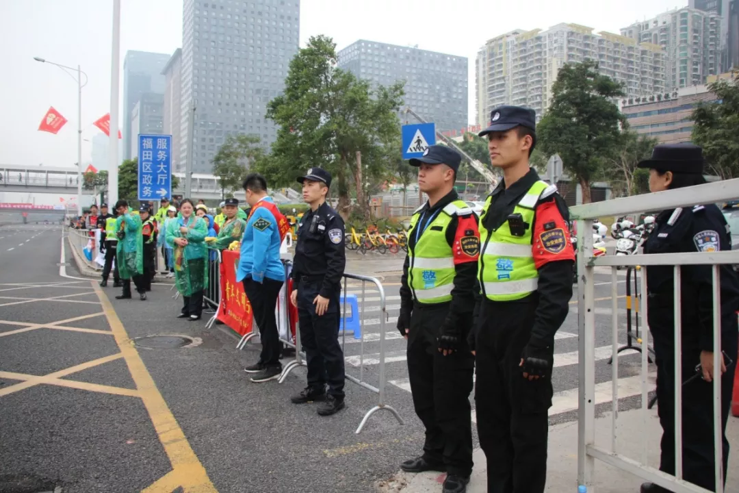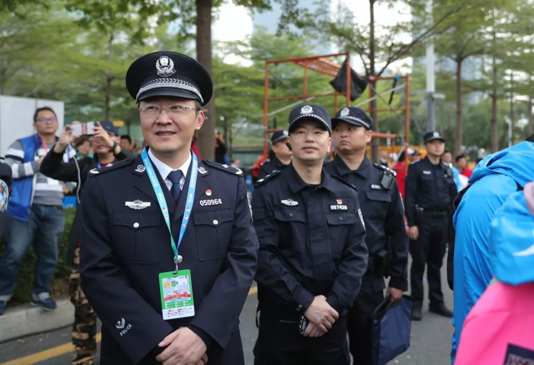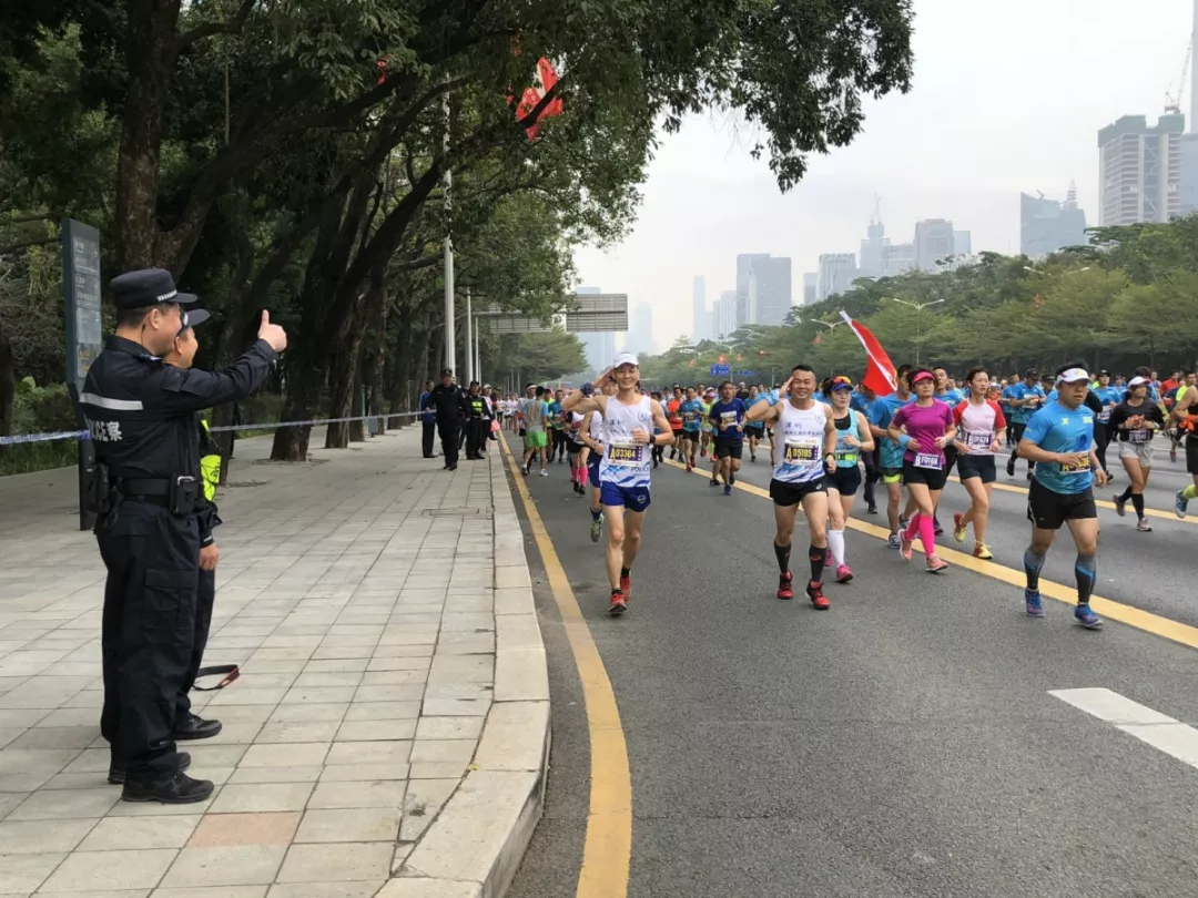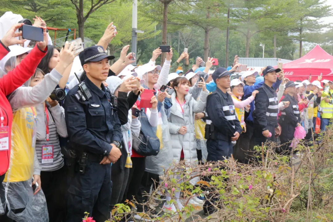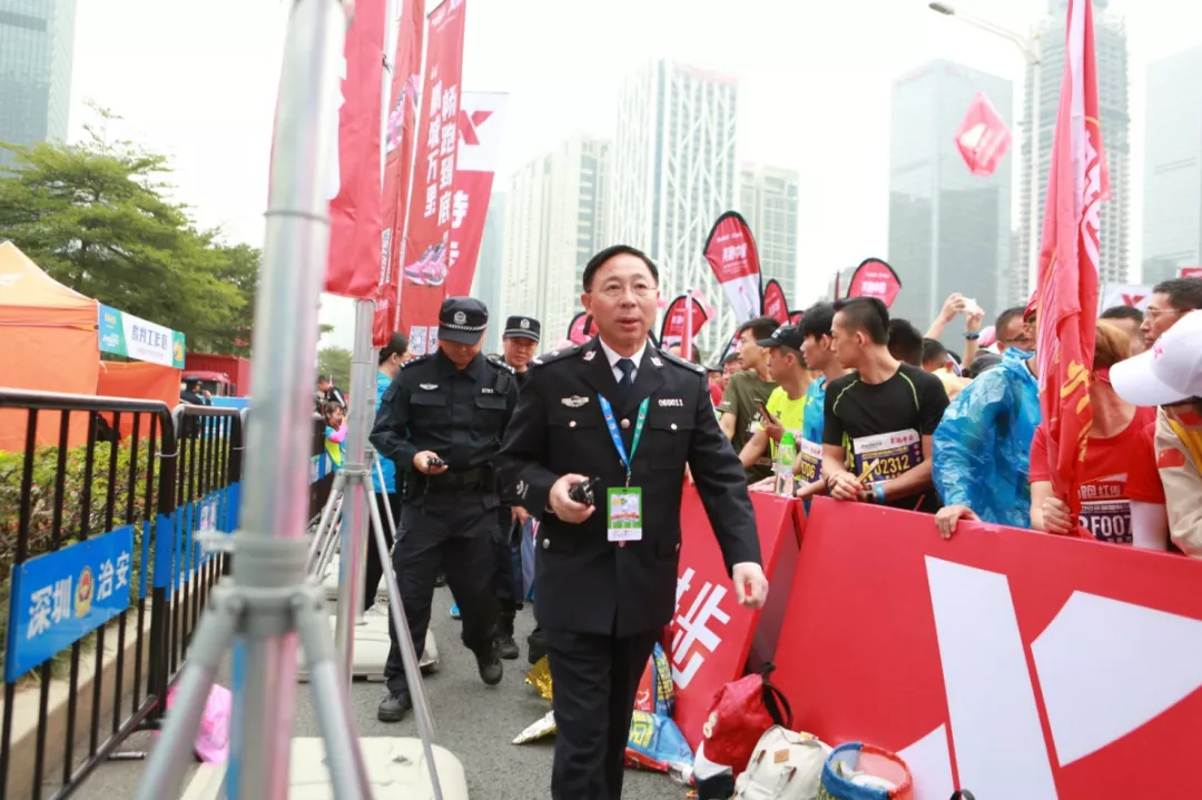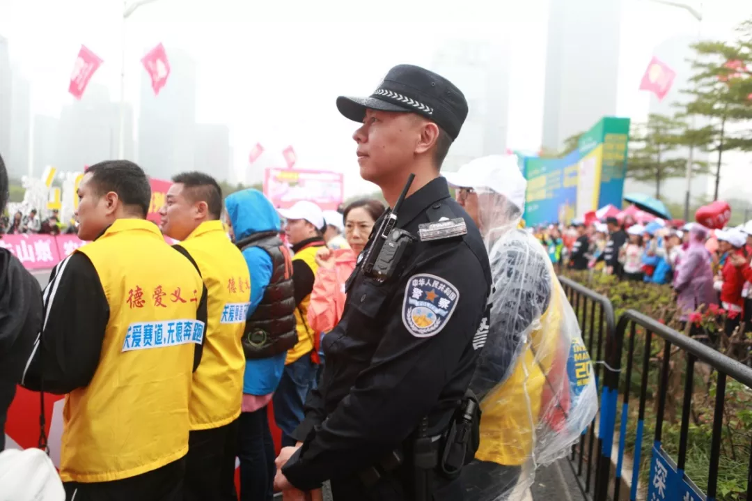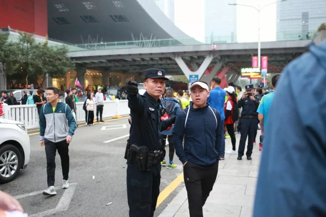 為全力做好此次馬拉松安保工作,福田警方提前謀劃、科學(xué)部署,承擔(dān)全程、半程馬拉松起點及6.2公里賽道的安全保衛(wèi),共出動警力1972人,啟用20套4G現(xiàn)場圖傳 “千里眼”,20套視頻識別探頭“守點”;警力實時定位系統(tǒng)、118個高低空視頻預(yù)案“守線”;71套現(xiàn)場視頻執(zhí)法記錄儀。從凌晨4點到下午2點,用長達10個小時的安?!榜R拉松”為賽事的順利開展保駕護航。