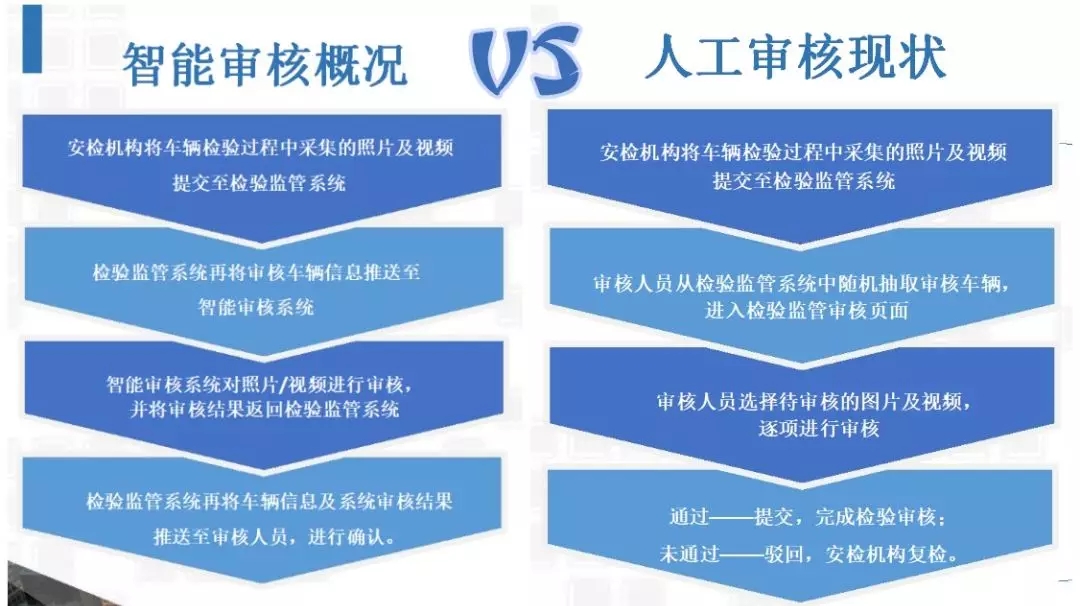 對(duì)審核結(jié)果、審核時(shí)間、通過率等各個(gè)方面,進(jìn)行實(shí)時(shí)監(jiān)控;智能審核信息的大數(shù)據(jù)分析,可為車輛檢驗(yàn)流程優(yōu)化提供強(qiáng)有力的支撐。