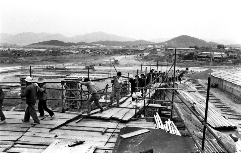 1985年,建設(shè)者們在深圳火車站人行天橋施工。呂翔攝
