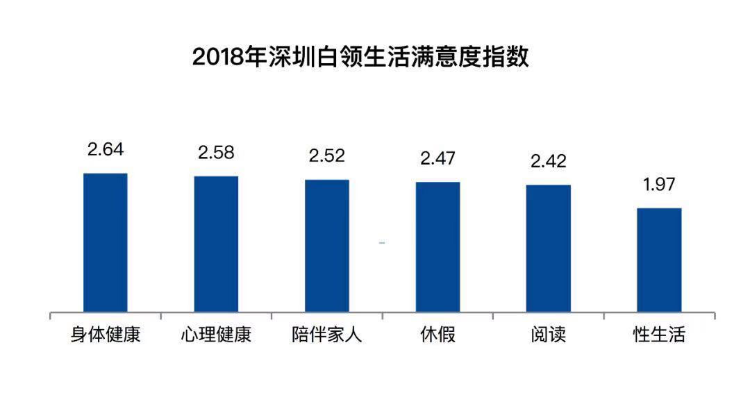 另外,根據(jù)調(diào)查,深圳白領(lǐng)對自己身體健康狀況的滿意度最高,對自己的性生活最不滿意。性生活雖然是一個(gè)隱秘的話題,但是卻又是決定白領(lǐng)生活質(zhì)量很重要的一環(huán),工作壓力大、經(jīng)濟(jì)壓力大也是深圳白領(lǐng)無暇戀愛,不能有太多精力經(jīng)營兩性關(guān)系的重要原因,如何在中間找到平衡點(diǎn),需要企業(yè)和雇員一起思考。