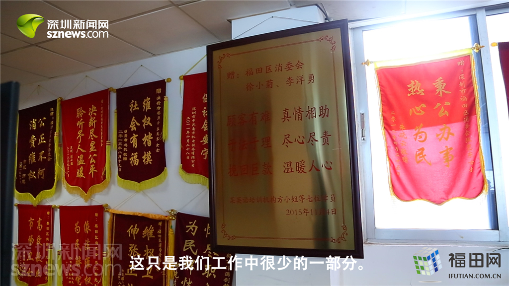 在福田區(qū)消委的走廊和辦公室里,掛滿了消費(fèi)者送的錦旗和牌匾近百面。