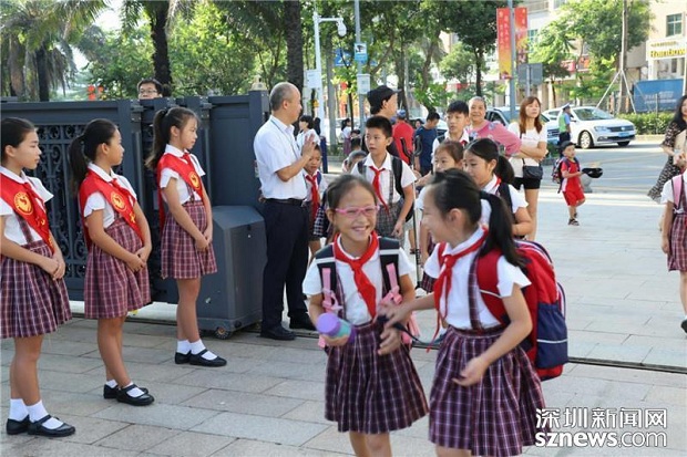 深圳家長(zhǎng)送孩子上學(xué)