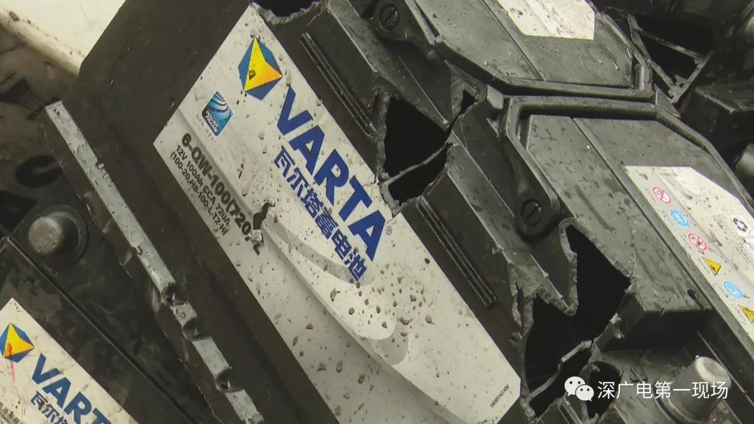 這是昨天下午2點多,記者跟隨南山區(qū)環(huán)保水務(wù)執(zhí)法人員,到現(xiàn)場查處時看到的情形。一處近500平米廢品回收場站內(nèi),廢舊電池堆積如山。