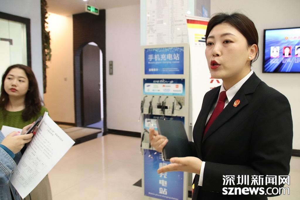 法官謝婷展示福田法院的流碼案件流轉(zhuǎn)系統(tǒng),該系統(tǒng)可節(jié)省80%的簽卷時(shí)間