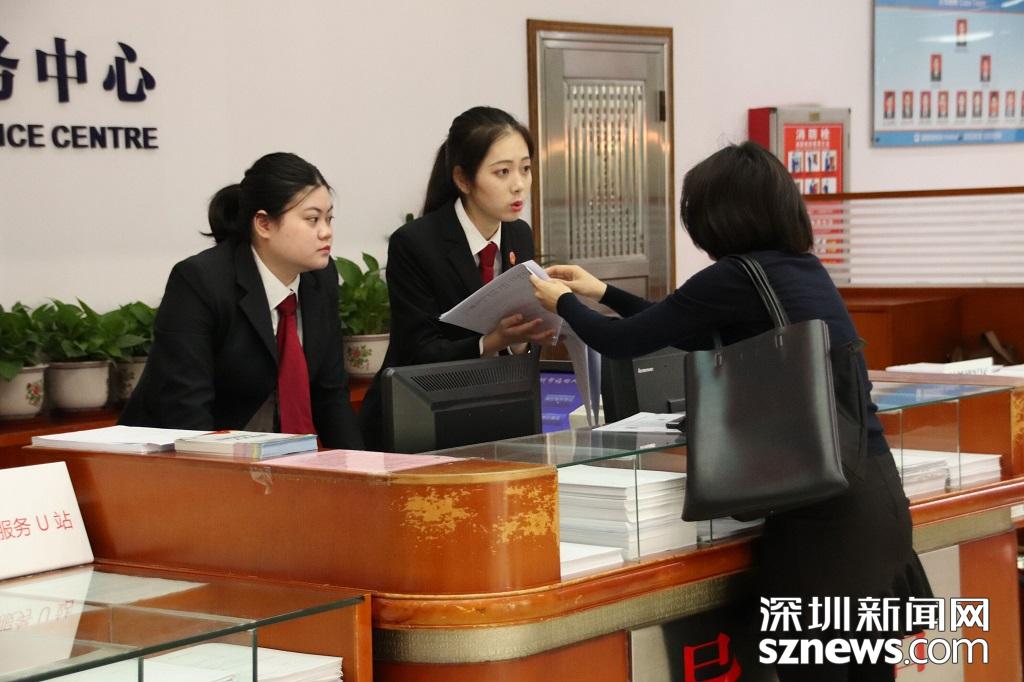 上午10點(diǎn)半,立案大廳1號窗口工作人員正在接收立案材料