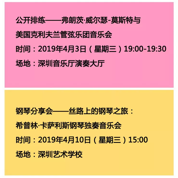 2019深圳“一帶一路”國際音樂季秉承文化惠民的原則,高品質(zhì)演出的門票價格平易近人,最低票價至100元/張。更有超值優(yōu)惠的學(xué)生票,部分演出免費免票。