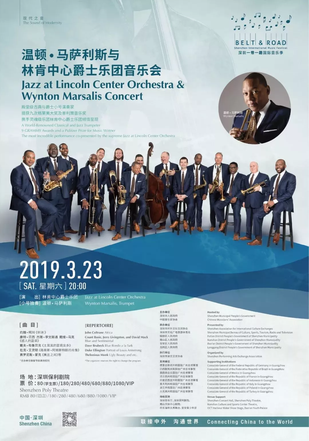 林大葉執(zhí)棒,溫頓 馬薩利斯,艾瑪 多伊徹參與,深圳交響樂團(tuán)與絲路沿線藝術(shù)家共奏薈萃東西方經(jīng)典、世界音樂以及中國現(xiàn)代音樂作品絢爛樂章。