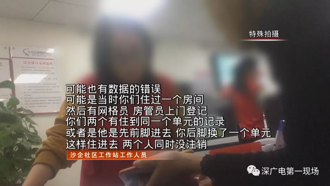如此一來,伍小姐上段婚姻是初婚的說法也得到了證實(shí)。記者隨后陪同伍小姐來到登記其為結(jié)婚狀態(tài)的新橋街道沙企社區(qū)工作站。說明來意后,工作人員也對(duì)伍小姐的信息進(jìn)行了核查。