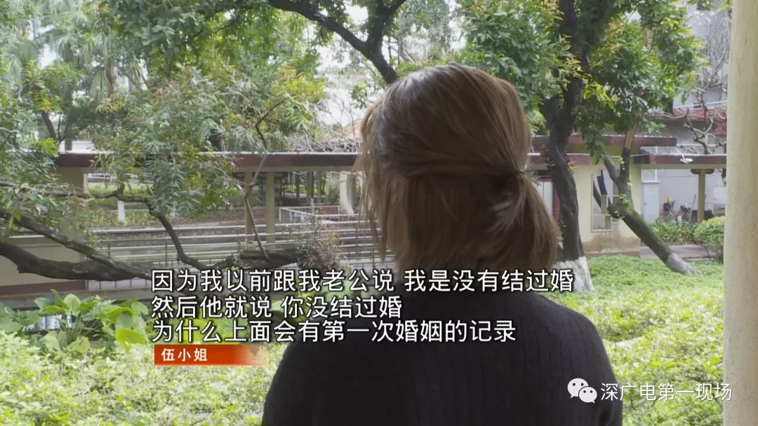 無(wú)奈之下,伍小姐只得再次來到深圳,打算為自己正名。記者和伍小姐首先來到寶安婚姻登記處,工作人員介紹,在婚姻登記過程中,男女雙方是無(wú)法隱瞞自己的婚史的。