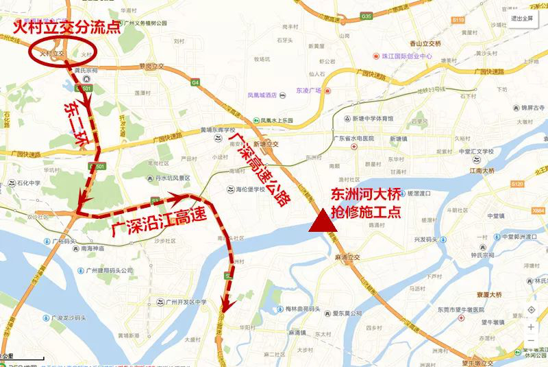 為了最大限度減少施工對(duì)出行造成的不便,廣深高速提前向社會(huì)發(fā)布廣深高速公路東洲河大橋南行封閉施工通告和繞行線路,同時(shí)將在沿線可變情報(bào)板同步滾動(dòng)發(fā)布施工信息。