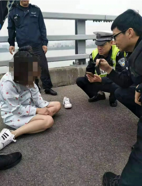 3月4日,深圳交警在沿江高速北行西鄉(xiāng)段救下了一名坐在高速公路護欄上準(zhǔn)備跳橋的女子