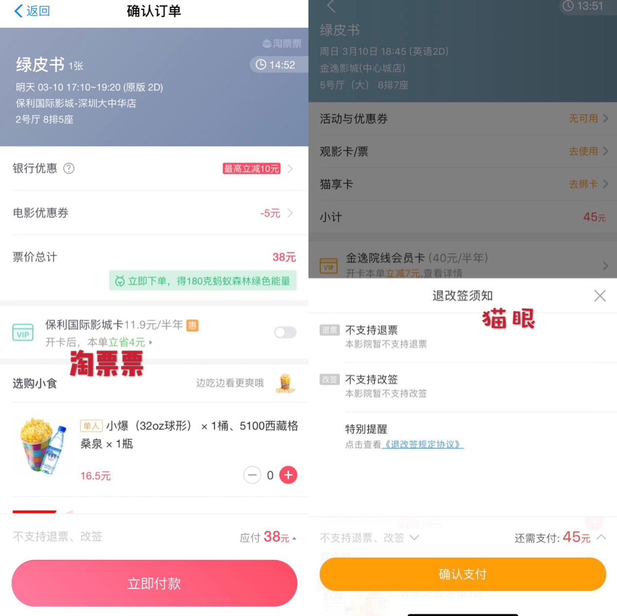 記者日前以熱映的電影《綠皮書》為例,在手機上查看福田各大影院“退改簽”情況。據(jù)統(tǒng)計,貓眼APP上當天的同一時段也有22家電影院可以購票,其中有7家電影院不支持“退改簽”,4家電影院僅支持“改簽”,11家電影院支持“退改簽”;淘票票APP上當天的同一時段共有22家電影院可以購票,其中有10家電影院不支持“退改簽”,占比不到50%。