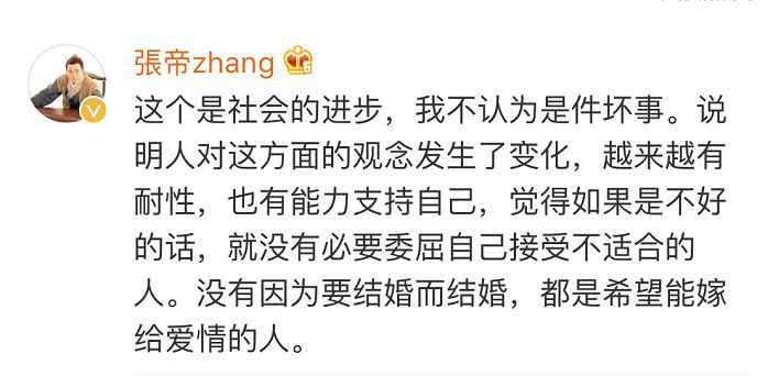 以前想著是28歲結(jié)婚,現(xiàn)在已經(jīng)無所謂了。如果是和對(duì)的人結(jié)婚,在我心里婚姻排第一,主要還是因人而決定步入婚姻。對(duì)戀愛、結(jié)婚對(duì)象最主要的標(biāo)準(zhǔn)就是價(jià)值觀要吻合。