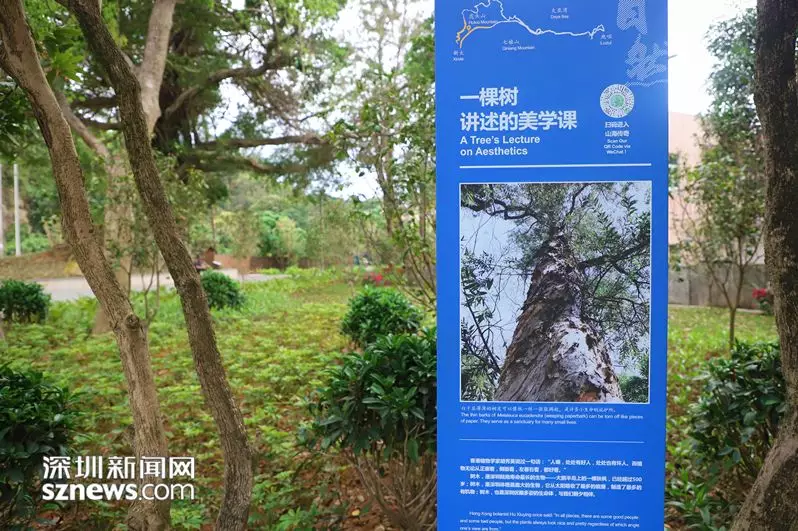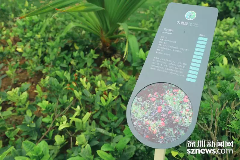 隨著綠道行進的深入,記者來到第一個自然觀察研習點,這里配置有自然研習導賞標識牌,牌上有植物動物的照片及介紹,牌子的角落有供游客學習的二維碼。記者了解到,新區(qū)同時開發(fā)建立一套APP自然課堂學習系統,在綠道全程配套建設64個實地自然觀察研習點,設置了260余個自然研習導賞標識,接入專業(yè)智能識別軟件,配以體量龐大生物影像數據庫。掃碼進入APP就可以通過文字、圖片和音像資料了解到“大鹿線”全景介紹和分區(qū)介紹,以及物種相關知識。同時,該系統利用手機GPS定位技術,為行進中的市民游客自動講解所到之處的自然課堂語音課程。來自羅湖的資深驢友李先生告訴記者,來“大鹿線”徒步,不僅鍛煉身體愉悅心情,還可以學到豐富的自然知識,打開APP行走全程,猶如參觀了一座多維一體的山?!叭安┪镳^”。