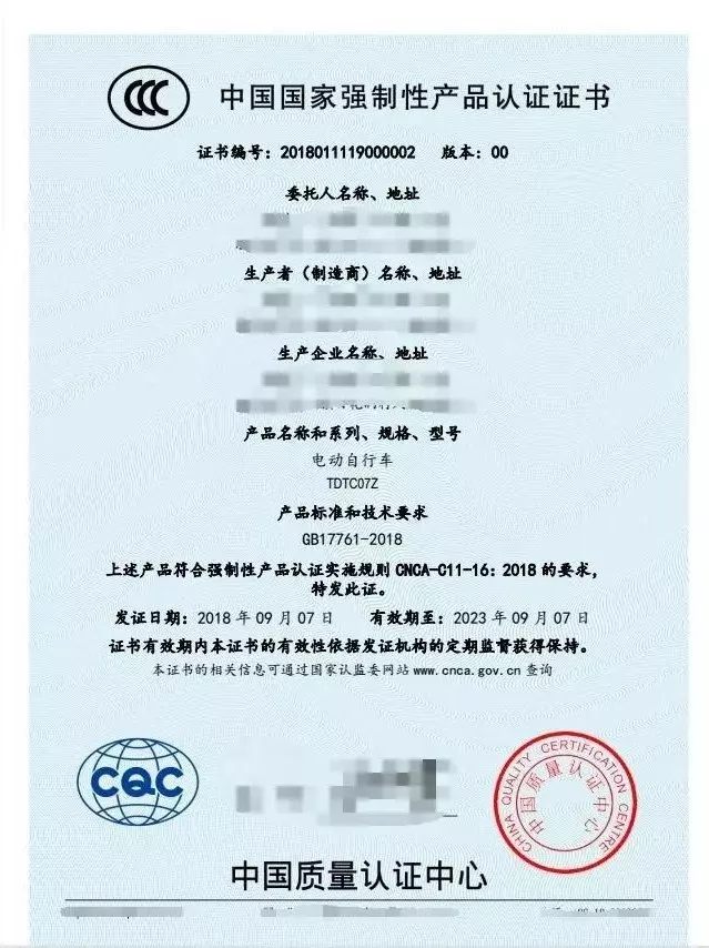 實行電動自行車銷售目錄或公告管理的地區(qū),新標(biāo)準(zhǔn)正式實施后所有不符合新標(biāo)準(zhǔn)、未獲CCC認(rèn)證的目錄車型全部作廢。