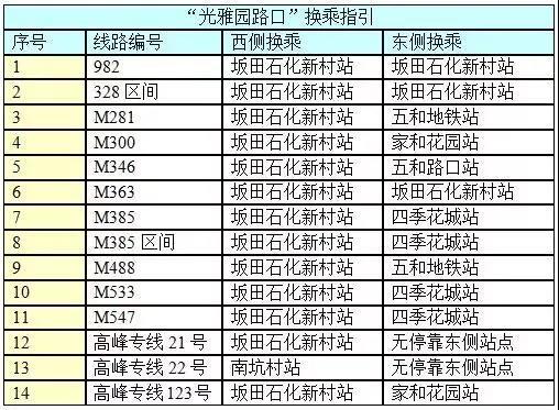 二、光雅園路口:982、328區(qū)間、M281、M300、M346、M363、M385、M385區(qū)間、M488、M533、M547、高峰專線21號、高峰專線22號、高峰專線123號等14條線路取消??抗庋艌@路口站,西側乘客可到坂田石化新村站、南坑村站換乘出行,東側乘客可到四季花城站、五和地鐵站、五和路口站換乘出行。