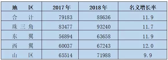 城鎮(zhèn)非私營(yíng)單位的排名則為珠三角、山區(qū)、西翼、東翼,分別是93240元、71988元、67243元和63658元;同比名義增長(zhǎng)率從高到低依次為西翼12.0%、東翼11.9%、珠三角11.7%和山區(qū)9.9%。最高和最低區(qū)域的平均工資之比為1.46,比上年縮小0.01。