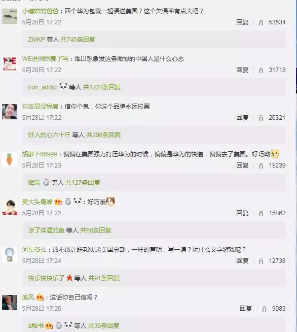 記者查證發(fā)現(xiàn),5月23日18點(diǎn)42分,聯(lián)邦快遞中國公司官方微博曾經(jīng)發(fā)帖否認(rèn)轉(zhuǎn)運(yùn)事件,稱“有關(guān)近期社交媒體平臺(tái)流傳聯(lián)邦快遞將客戶貨件沒收,并轉(zhuǎn)運(yùn)至美國檢查的消息與事實(shí)嚴(yán)重不符”。