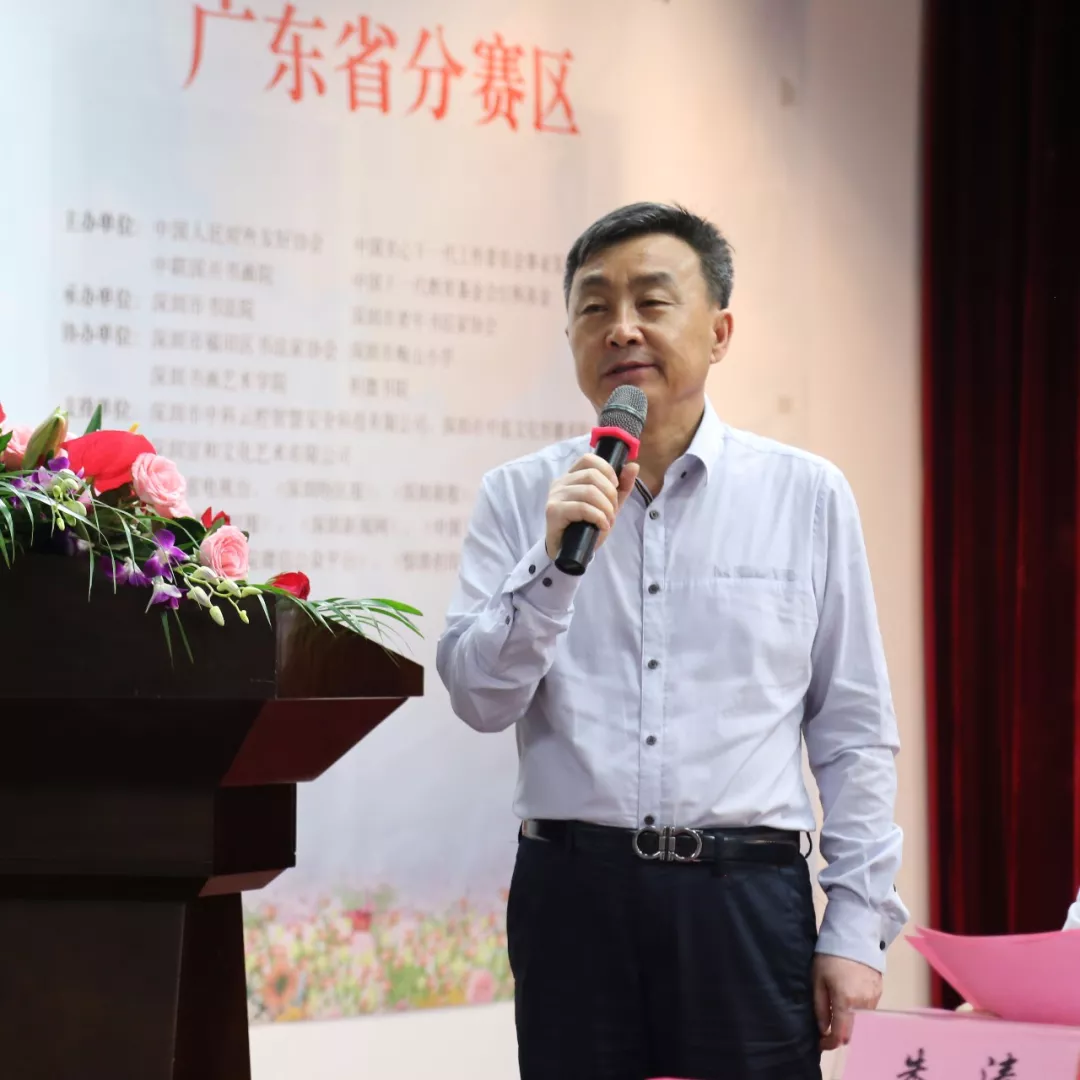 原深圳市文聯副主席、“中華好書法”全國中小學師生書法大賽書法大賽組委會副主任兼廣東省分賽區(qū)組委會主任顧煥金,在啟動儀式上他從政治意義,文化意義及時代意義三個方面,闡述了這次大賽的重要性、必要性。并向全省中小學師生發(fā)出了邀請,他希望廣大師生積極參與本次大賽,以高水平的書法作品展示廣東中小學師生的書法藝術水平,并通過本次大賽,進一步弘揚祖國優(yōu)秀傳統文化,助力全省書法教師隊伍建設,推動中小學書法教育的健康發(fā)展,促進優(yōu)秀傳統書法及書法精神的滲透與傳播。
