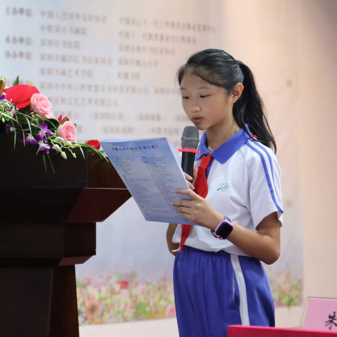 深圳市梅山小學胡穎欣同學代表參賽學生講話