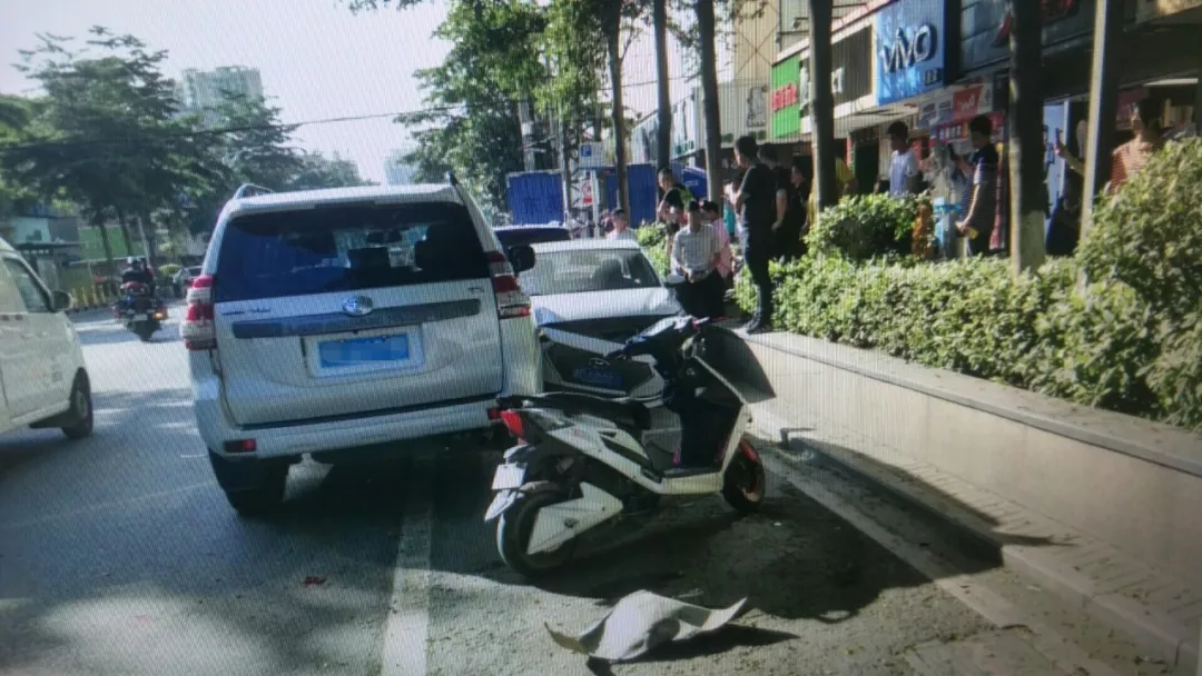 直到15時30分左右,郭某亮駕駛粵B****P號牌機動車準備回沙井,其從羅湖筍崗走北環(huán)大道轉(zhuǎn)107國道,到了沙井走南環(huán)路轉(zhuǎn)東環(huán)路,行駛至沙井上南大街某購物廣場時追尾了一輛粵S****9號牌面包車,方向盤失控后又撞到了停在路邊的兩輛小轎車。