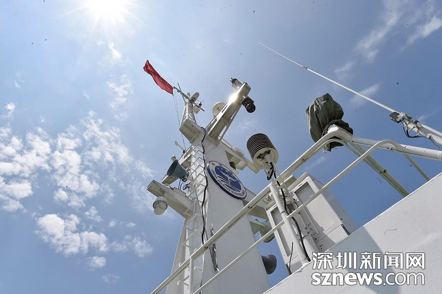 海監(jiān)船頂,五星紅旗迎風飄揚