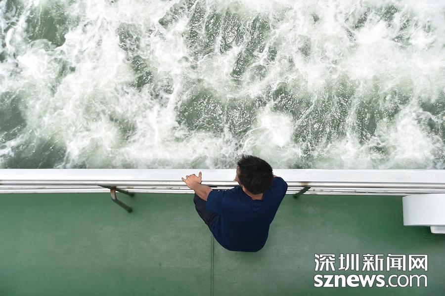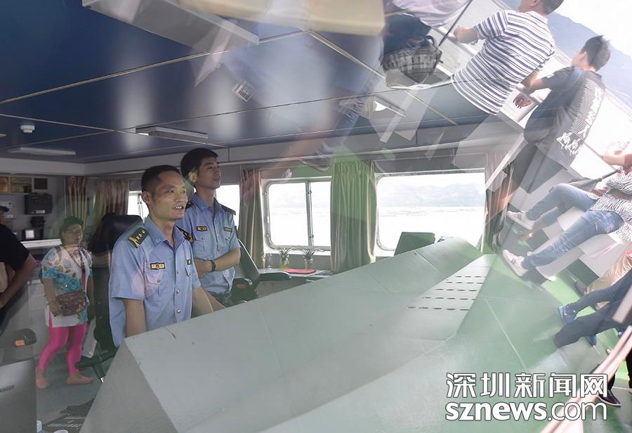 120名市民代表分成兩個航次乘船出游,每航次60人。中國海監(jiān)9012船從深圳濱海休閑帶海監(jiān)廣場碼頭起航,市民海上參觀了深圳灣大橋,經(jīng)國際郵輪母港、SCT碼頭,到大鏟島附近海域,后返回蛇口海監(jiān)基地。