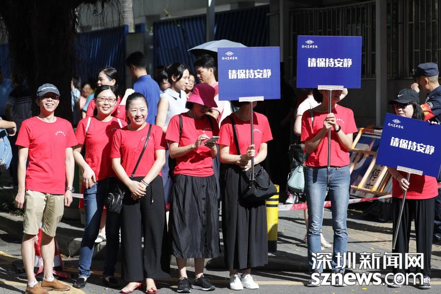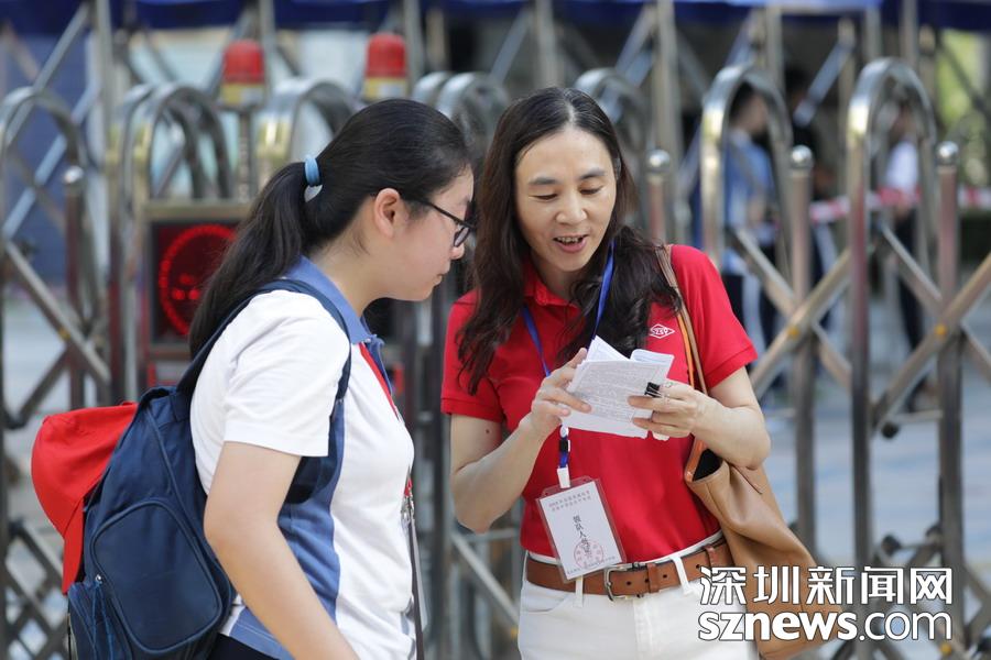 深圳實驗中學老師等待在考點外,為學生發(fā)放準考證