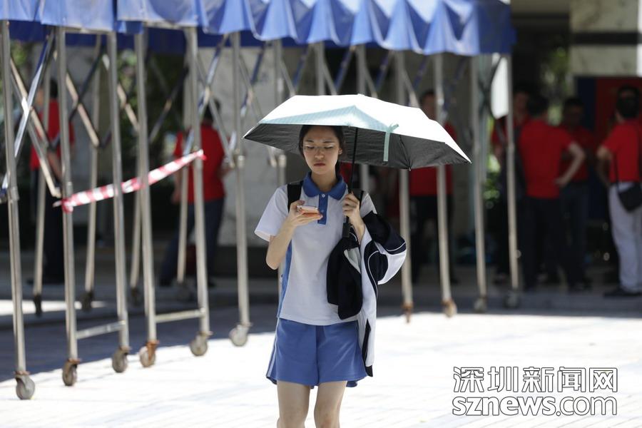 高考首日,深圳夏天的炎熱初顯威力,各路高考保障人員在熾熱的陽光下有序開展工作:交警鐵騎護送考生順利抵達考場;愛心出租車免費接送考生;高考志愿者幫助協(xié)調考場外秩序……同時,比陽光更“熾熱”的是送考家長們的熱切和關心。