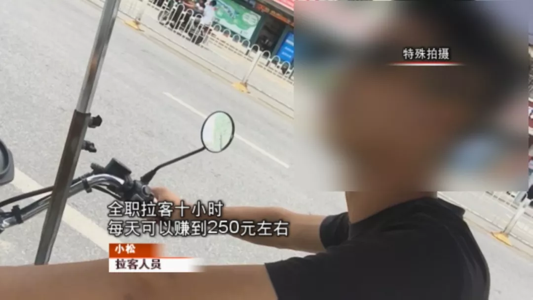 他們還表示,電單車一天的成本是三塊錢左右而摩托車拉客的成本則高達三十多塊錢,但是由于速度快效率高,能夠更好躲避執(zhí)法,不少拉客人員都選擇使用摩托車。