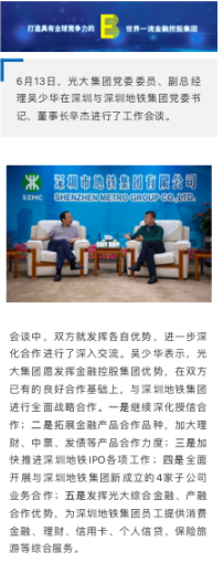 它發(fā)文稱:光大集團(tuán)正在與深圳地鐵加快推進(jìn)深圳地鐵IPO各項工作