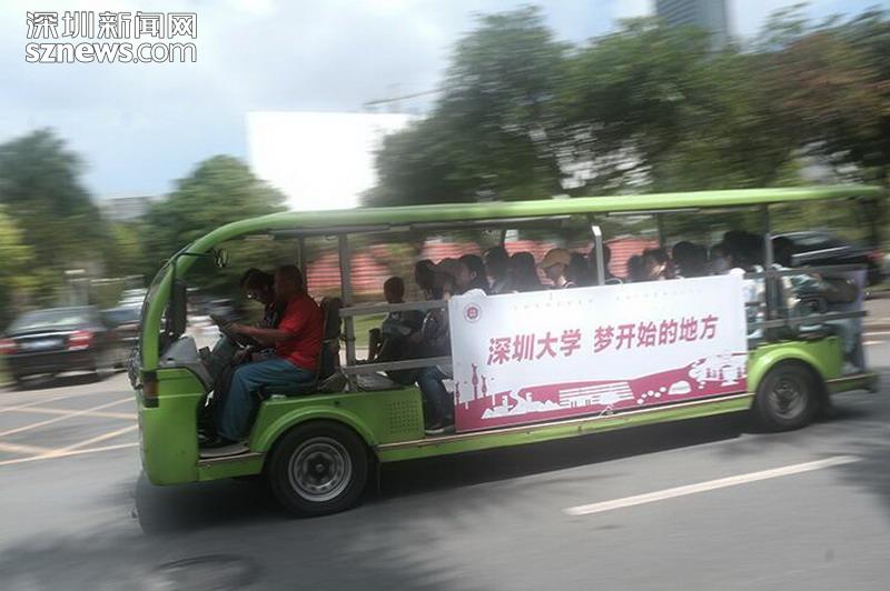 開(kāi)放日校方免費(fèi)開(kāi)放了電瓶車搭載學(xué)生家長(zhǎng)進(jìn)行參觀