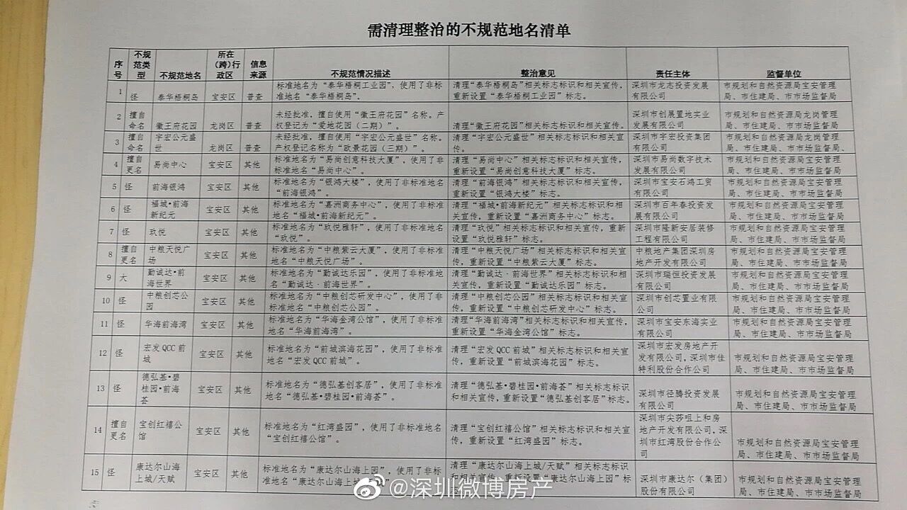 據(jù)了解,首批名單中,寶安是重災(zāi)區(qū),共有24個(gè)在列;光明7個(gè)、龍崗坪山羅湖均為6個(gè)、龍華5個(gè)、福田4個(gè)、南山2個(gè)、鹽田和大鵬均為1個(gè)。
