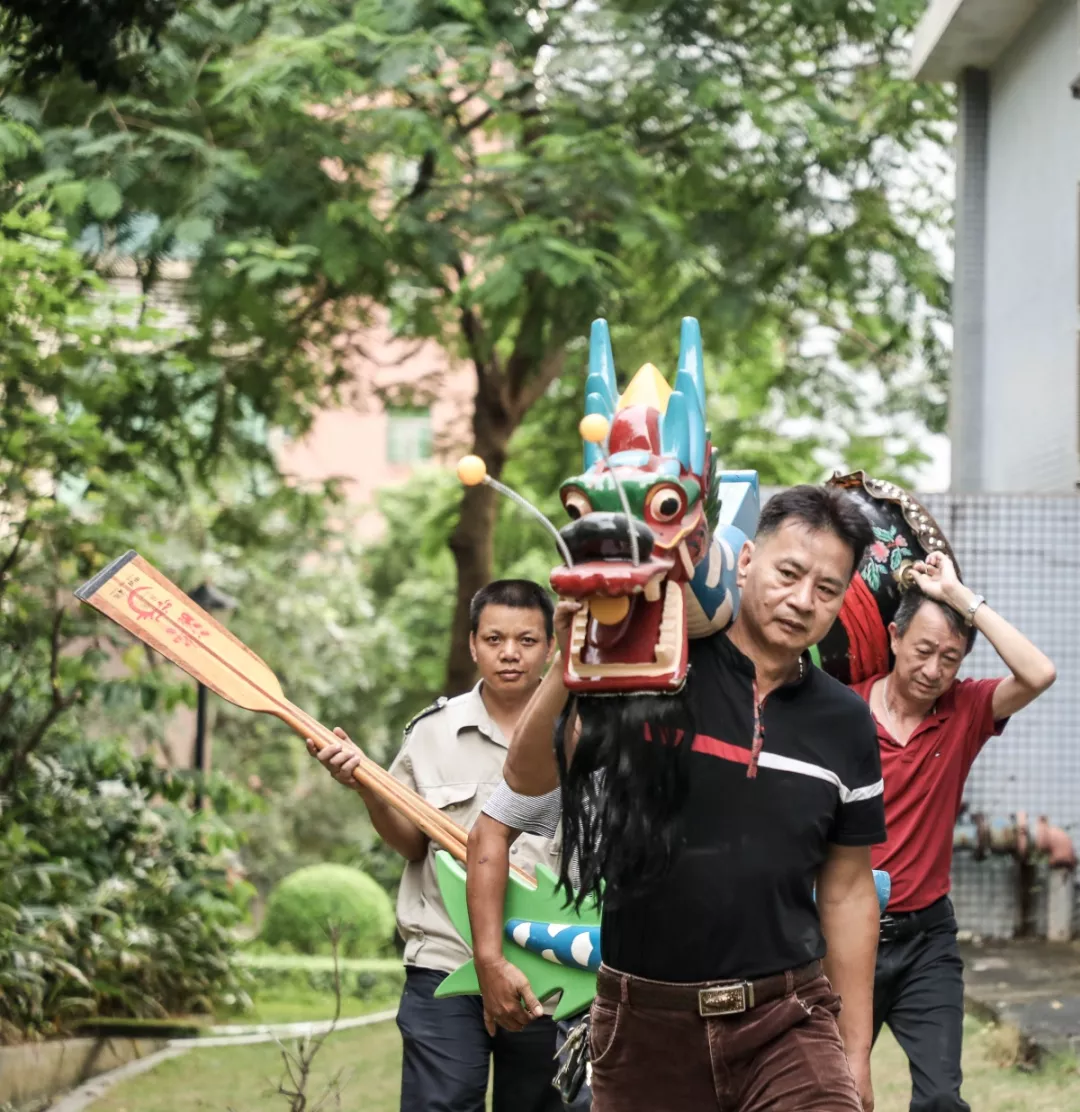 多年來,記憶中的龍舟漸漸褪色,又在2016年突然變得鮮活起來。那一年,松崗街道時隔多年再次舉辦龍舟賽,洪橋頭社區(qū)尤為重視,組建起龍舟隊后,他就加入其中,成為龍舟隊的劃手,而父親依然是龍舟隊的舵手。