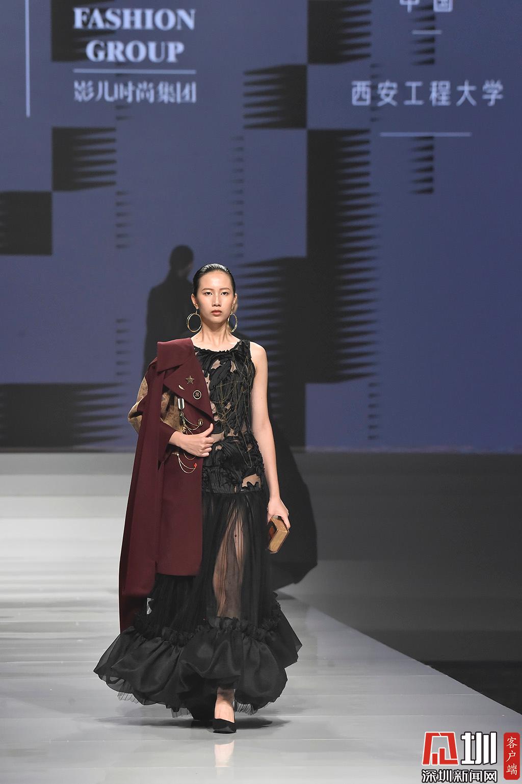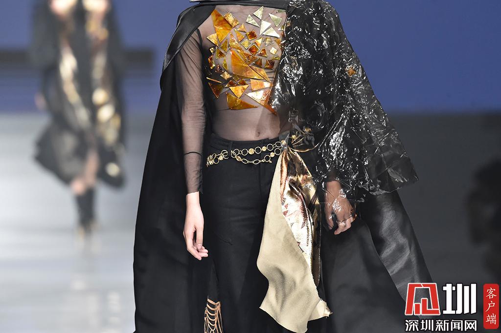 時裝優(yōu)秀學生組展示環(huán)節(jié),設計師肖榕作品,其作品以純黑色系為主
