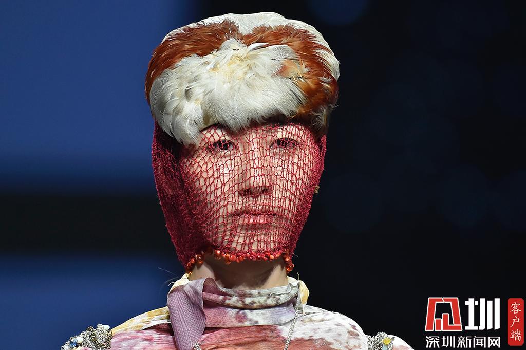 時裝優(yōu)秀學生組展示環(huán)節(jié),一位模特以獨特的造型亮相