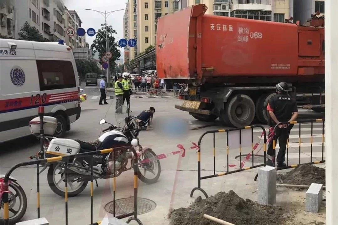 遭遇一輛右轉(zhuǎn)彎的垃圾運輸車碾壓