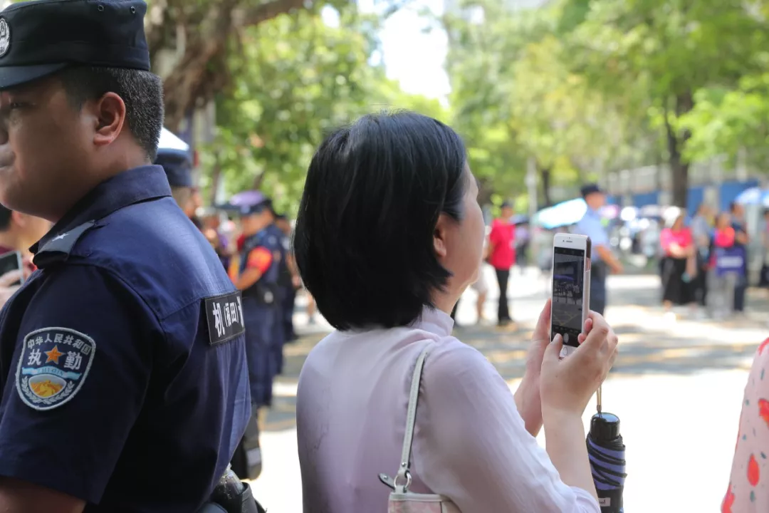 與往年不一樣,今年高考雖無風雨,但是酷暑難耐,近500名送考家長已經(jīng)在校門外站了2個多小時了。隨著離考試結(jié)束時間越來越近,原本還平靜的人群漸漸開始騷動起來。為了緩解家長們焦慮的心情,林志強跟家長們建議,“一會兒學(xué)生們考完試出來咱們給他們鼓鼓掌!”“好!”林志強的建議立馬得到了家長們的贊同。