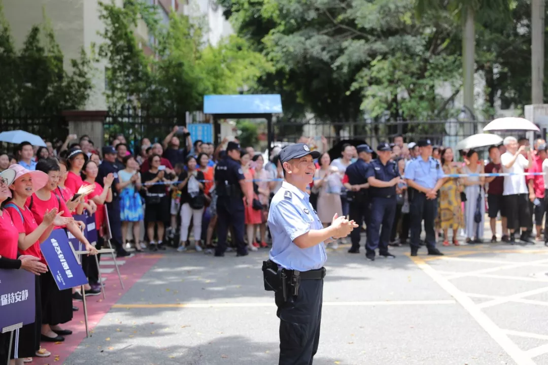 在深圳實驗中學(xué)的校門外,正在執(zhí)勤護考的通心嶺派出所所長林志強正跟送考的家長們“嘮嗑”?!按蠹叶颊具@么久了,辛苦了!一會考試結(jié)束后,咱們來猜一猜第一個走出來的是男生還是女生?!薄拔也率悄猩??!薄拔也率桥??!奔议L們一掃臉上焦急的表情,開始笑著討論起來。