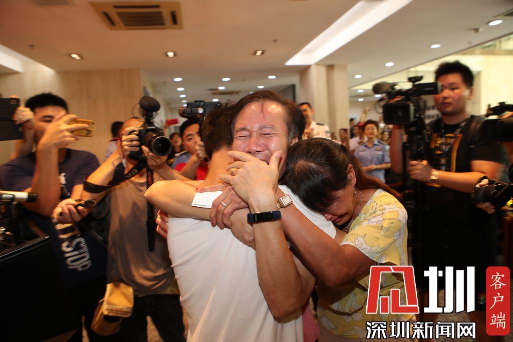 深圳新聞網2019年7月18日訊(記者 涂勝 通訊員 施冰凌)“終于找到你了,我的孩子!”7月18日上午,在深圳市公安局刑事偵查局和福田分局的幫助下,尋子18年的余氏夫婦在深圳市刑偵局技術處一樓見到了兒子,團聚現場余氏夫婦將兒子緊摟懷中,淚流滿面。