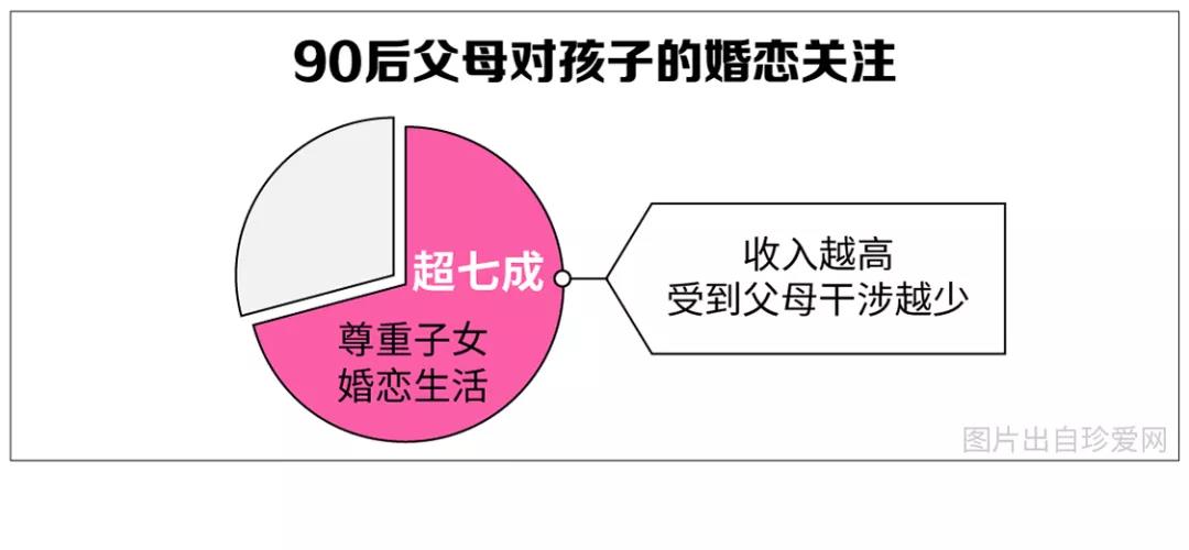 90后的婚戀觀發(fā)生著變化,他們的父母對此又有怎樣的反應(yīng)呢?調(diào)查顯示,超7成父母選擇尊重子女的婚戀生活;子女收入越高,在婚戀選擇方面受到父母干預(yù)越少,這也證明經(jīng)濟獨立,可以讓單身男女在婚姻方面有更多的話語權(quán)。