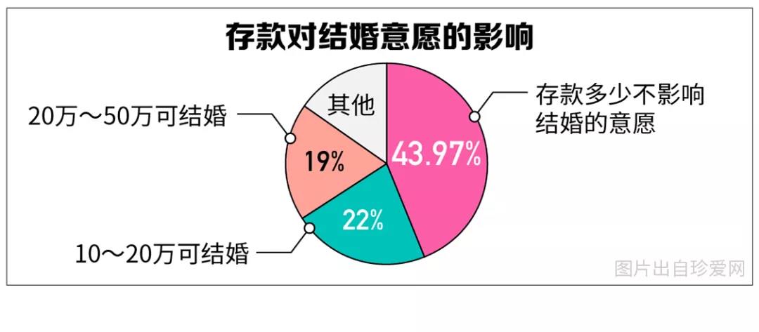 調(diào)查顯示,近7成90后單身青年認(rèn)為經(jīng)濟(jì)水平不是唯一重要的擇偶標(biāo)準(zhǔn)。近半數(shù)(43.97%)90后認(rèn)為存款多少不影響結(jié)婚的意愿;其中,男生(53.87%)認(rèn)為存款多少不影響結(jié)婚的比例高于女性(37%)。在結(jié)婚籌備上,女性對經(jīng)濟(jì)的考量多過男性。
