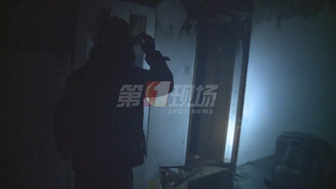 現(xiàn)場(chǎng)有消防人員陸續(xù)從著火單位里走出來(lái)