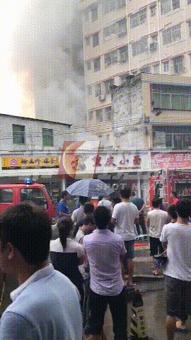 現(xiàn)場(chǎng)冒出的濃煙有數(shù)層樓高