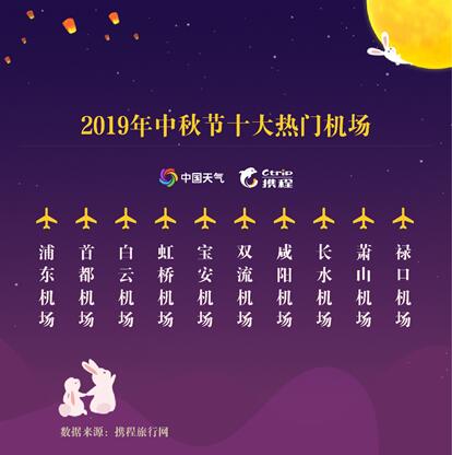 出行方式上,人們長線出行首選飛機。今年中秋節(jié)期間,浦東機場、首都機場、白云機場、虹橋機場、寶安機場、雙流機場、咸陽機場、長水機場、蕭山機場以及祿口機場是十大熱門機場。