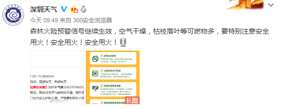 此外,森林火險預警信號繼續(xù)生效,空氣干燥,枯枝落葉等可燃物多,要特別注意安全用火!