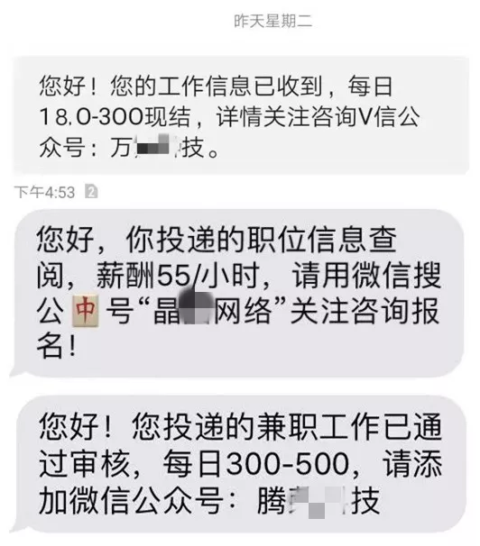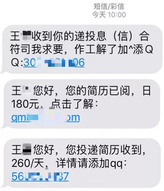 內容更是大同小異,都是要求應聘者添加某個QQ號或者關注某個微信公眾號。